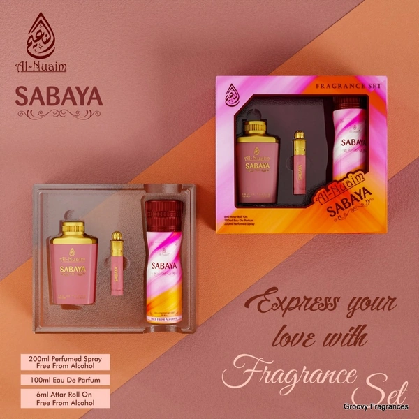 Experience the enchanting aromas of Al Nuaim Sabaya Fragrance Set 3 In 1.