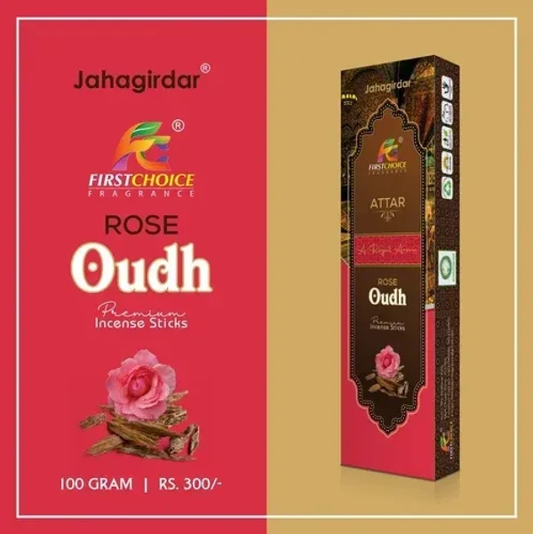 Experience the divine aroma of First Choice ROSE OUDH Premium Incense Sticks, the best and branded Indian Agarbatti available.