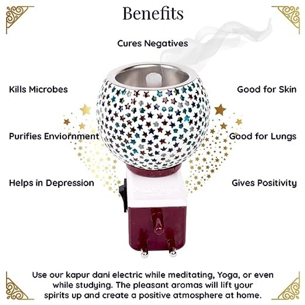 Prathna Platinium Electric Kapoor/Aroma/Bakhoor Burner for Home Fragrance with Night lamp Ceramic Incense Holder (Multicolor)